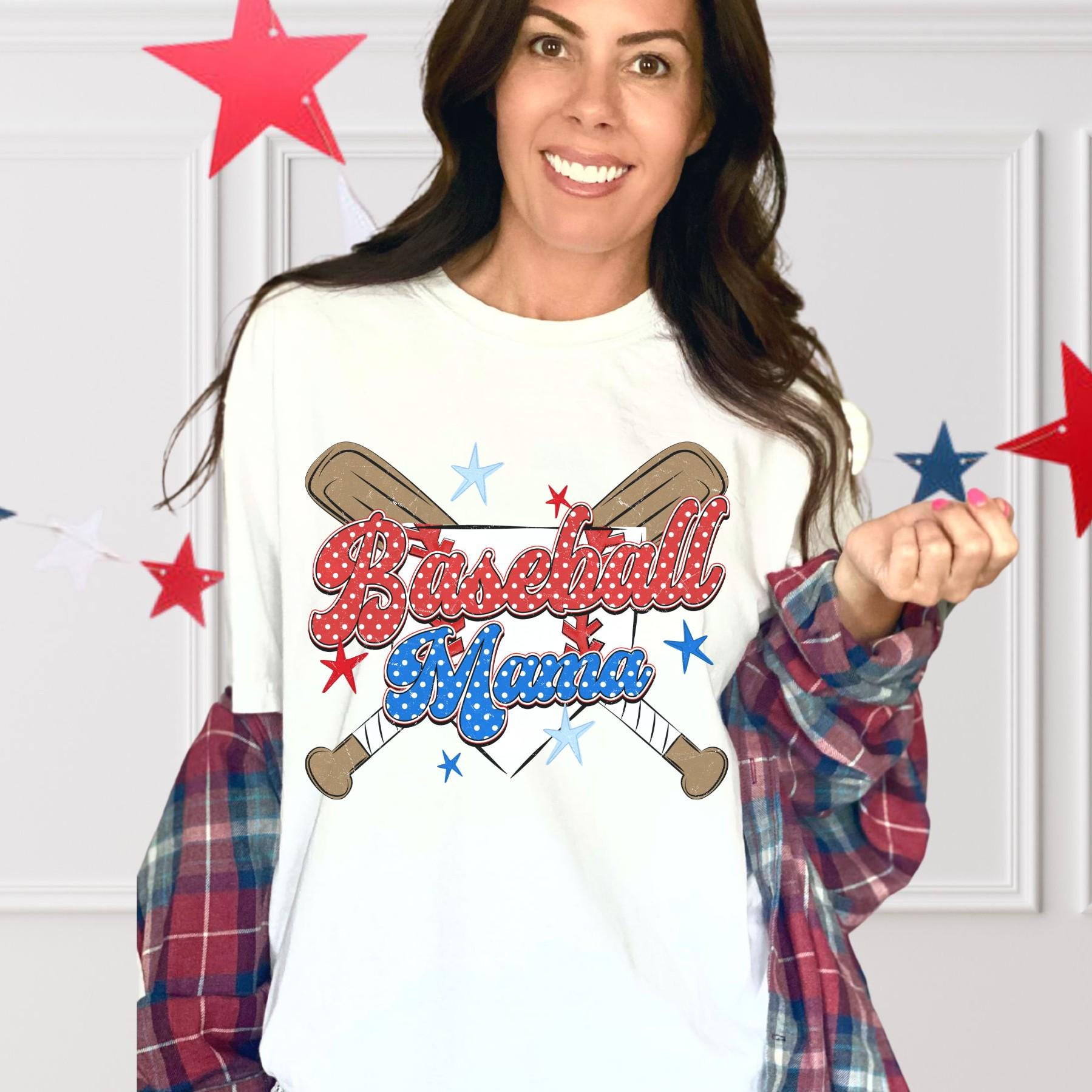 Perfect for baseball season, tournaments, and 4th of July celebrations—because being a baseball mama is a year-round role.