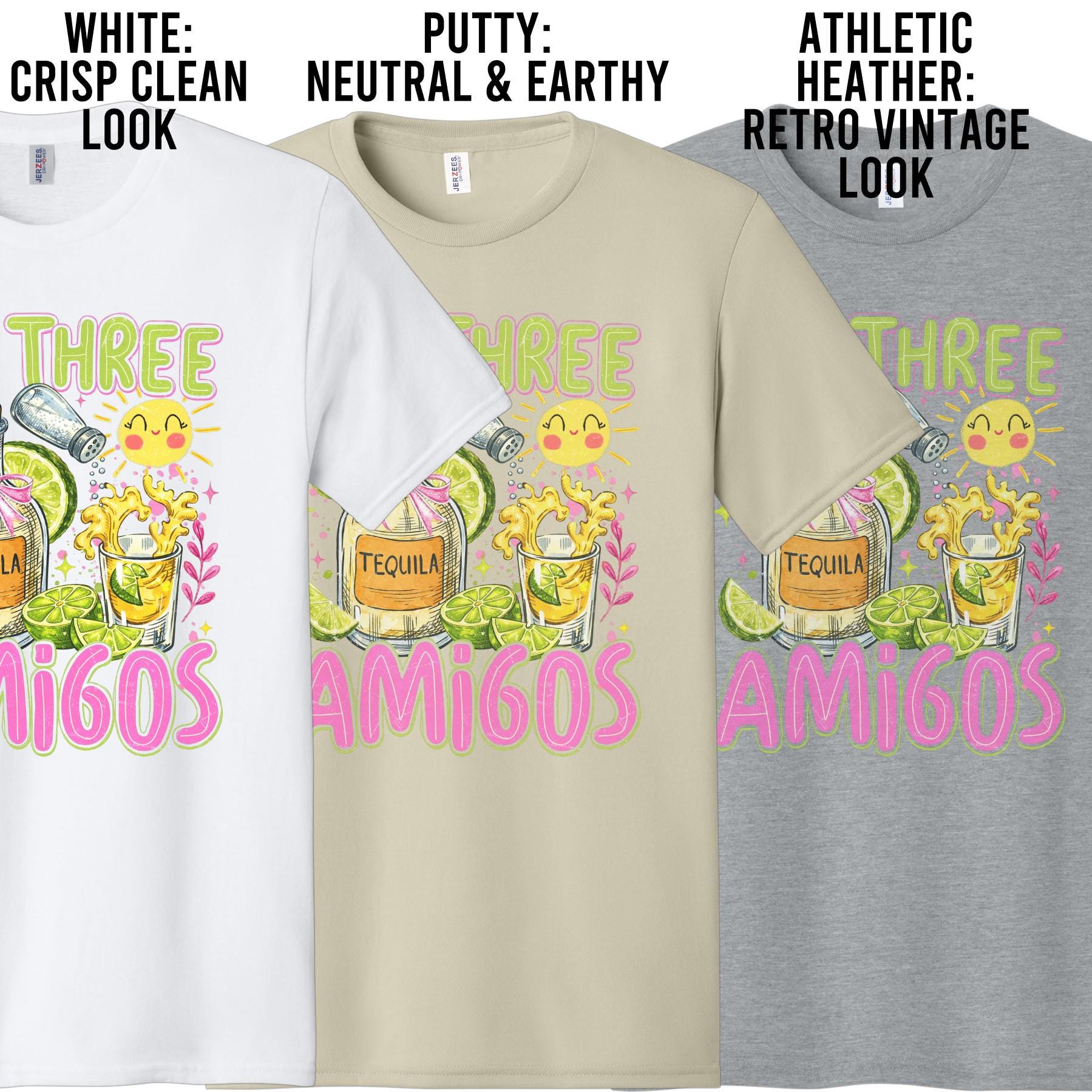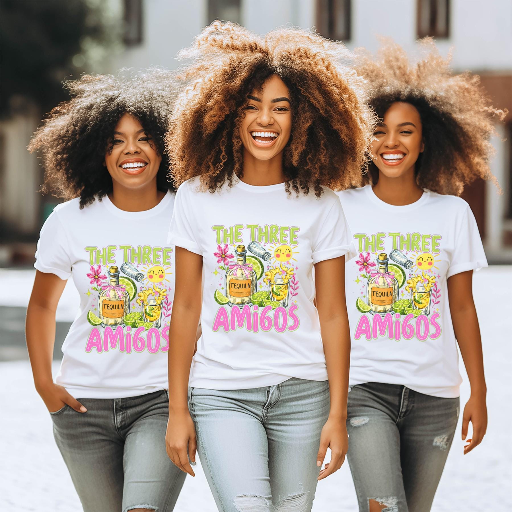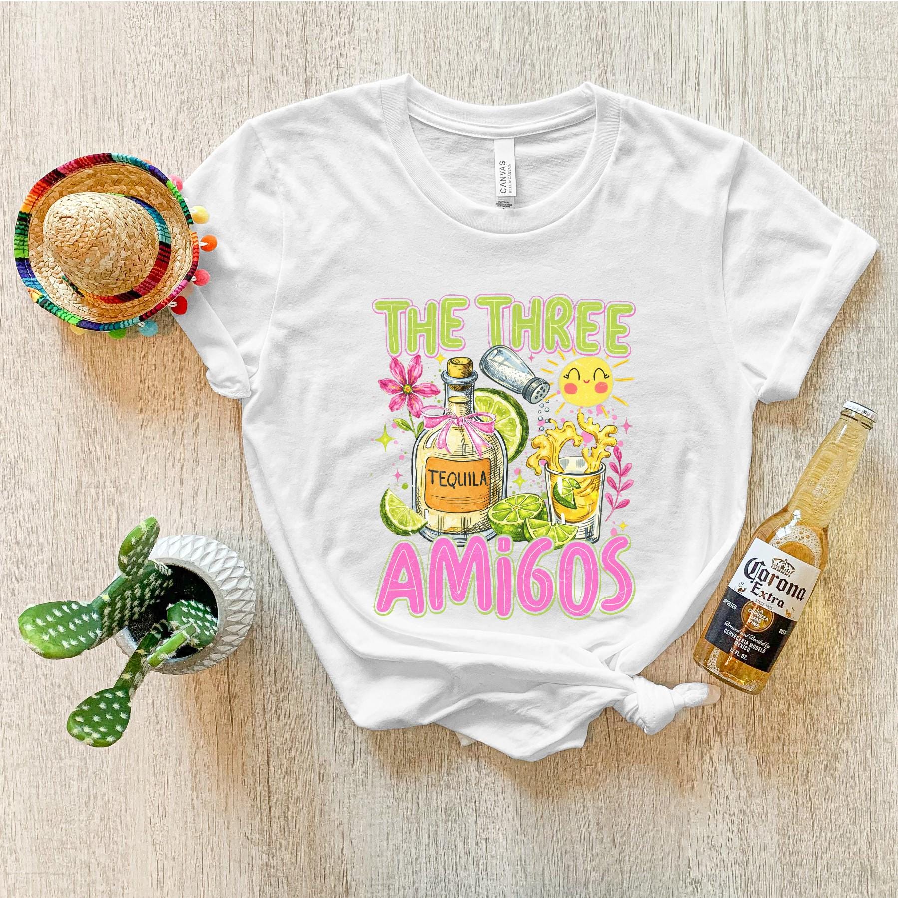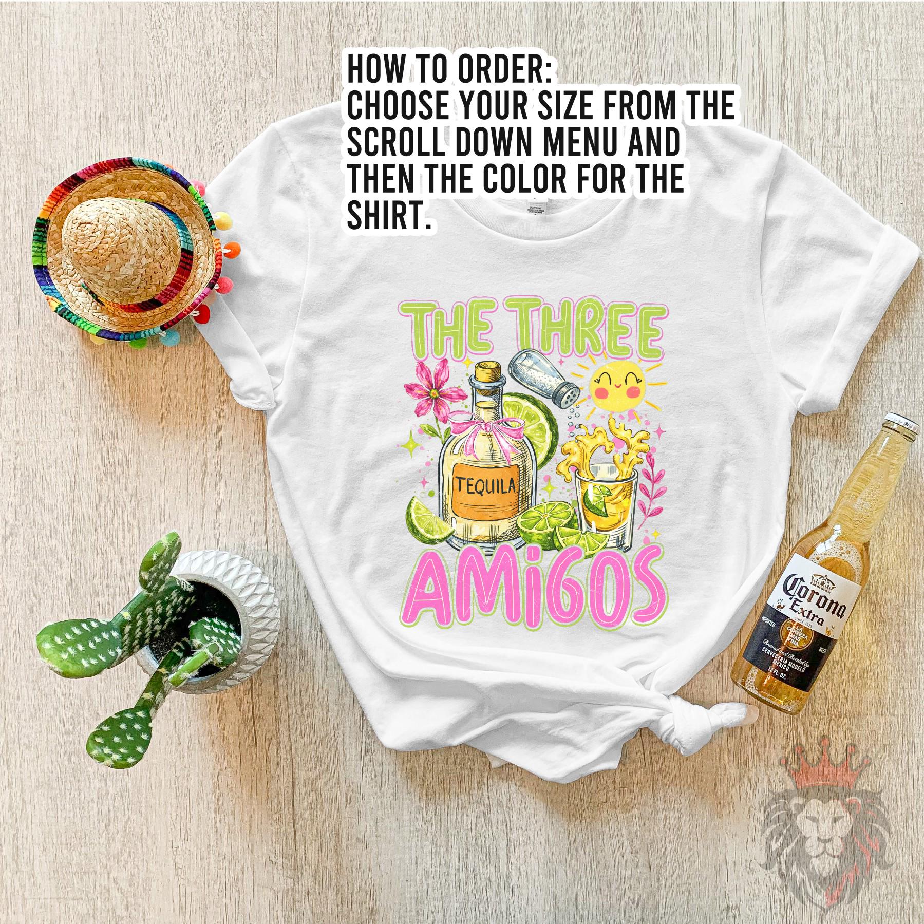 This “The Three Amigos” graphic tee is the perfect match for your fiesta crew. Featuring a fun, colorful design with tequila, limes, and playful details, this shirt is made for Cinco de Mayo parties, girls’ trips, and unforgettable nights with your favorite people.
