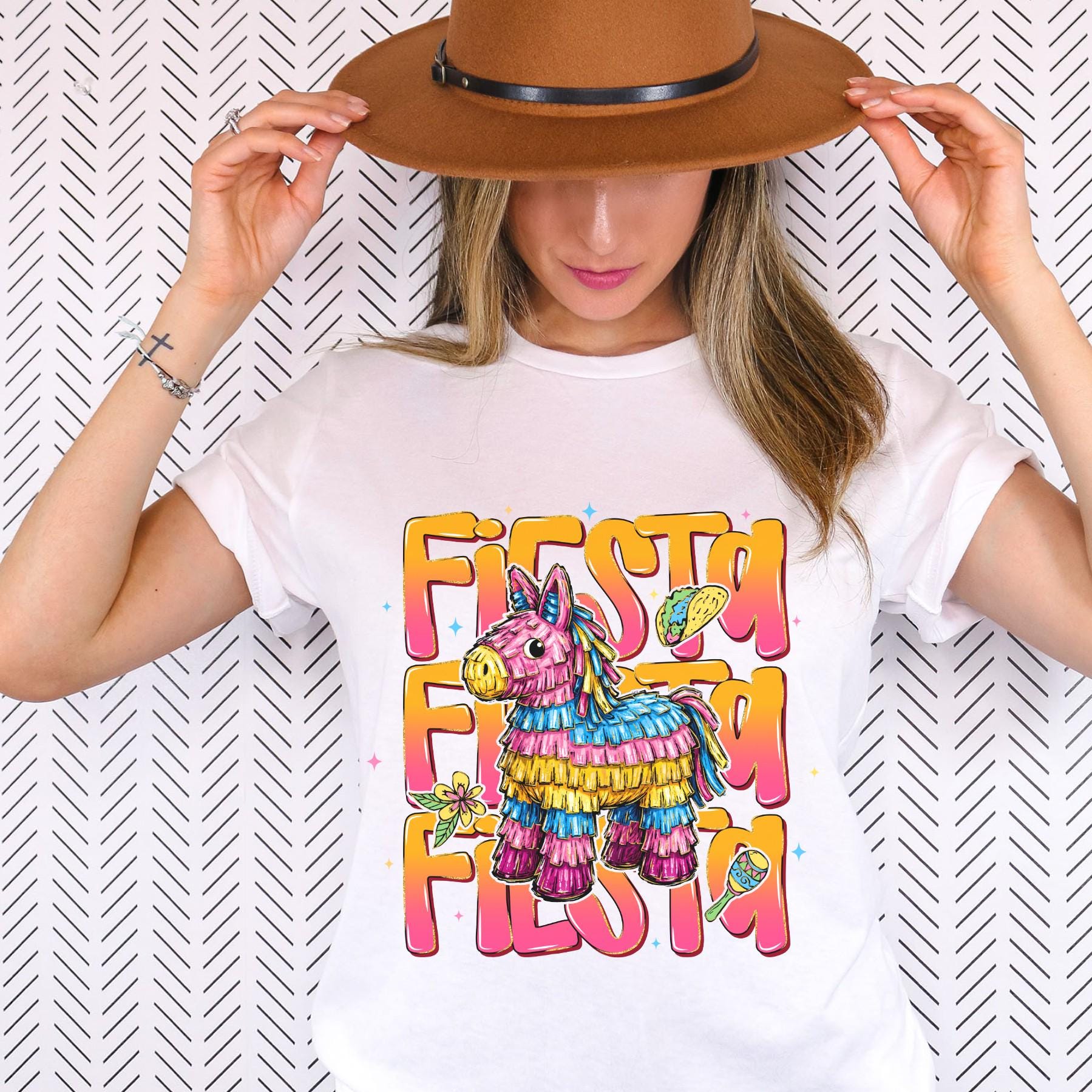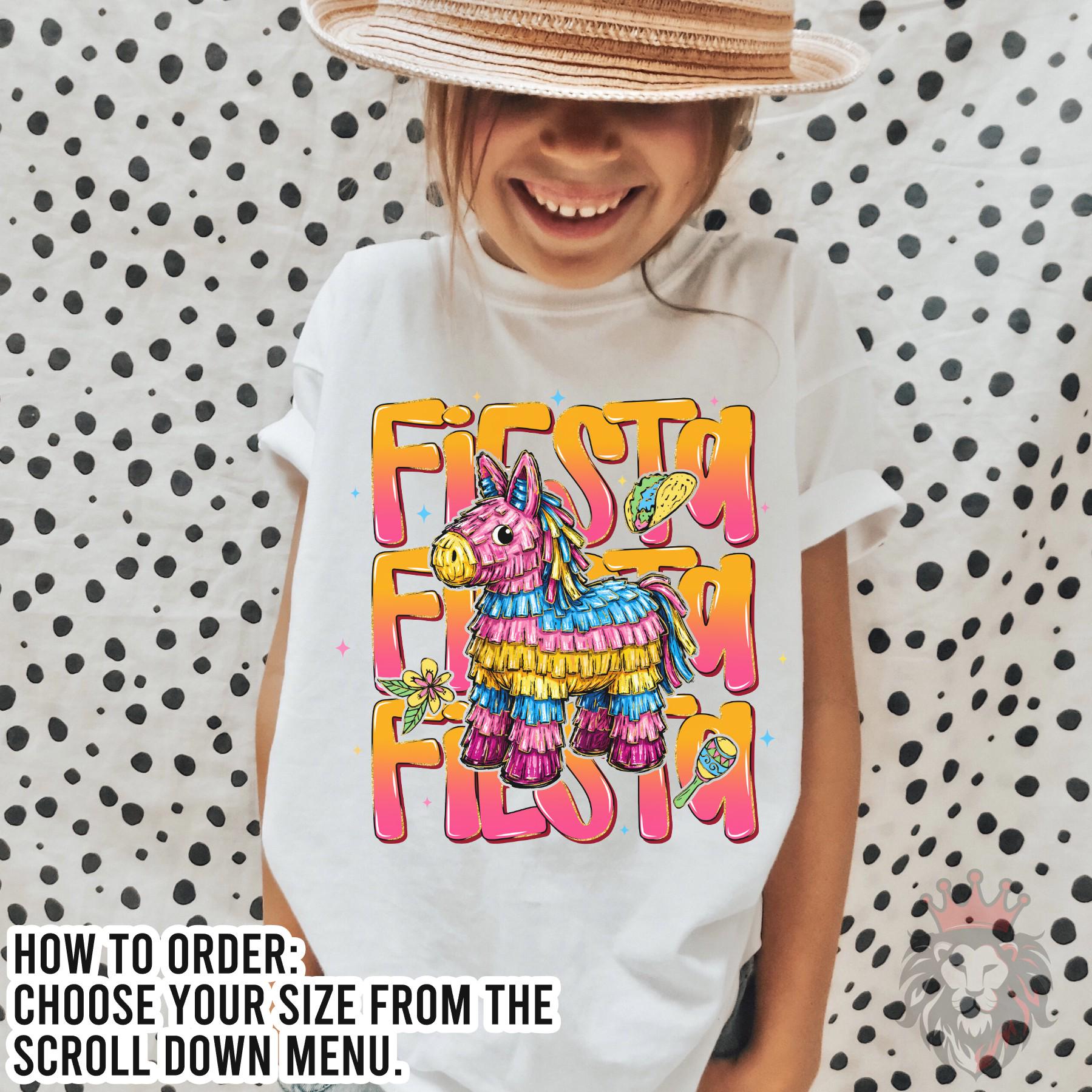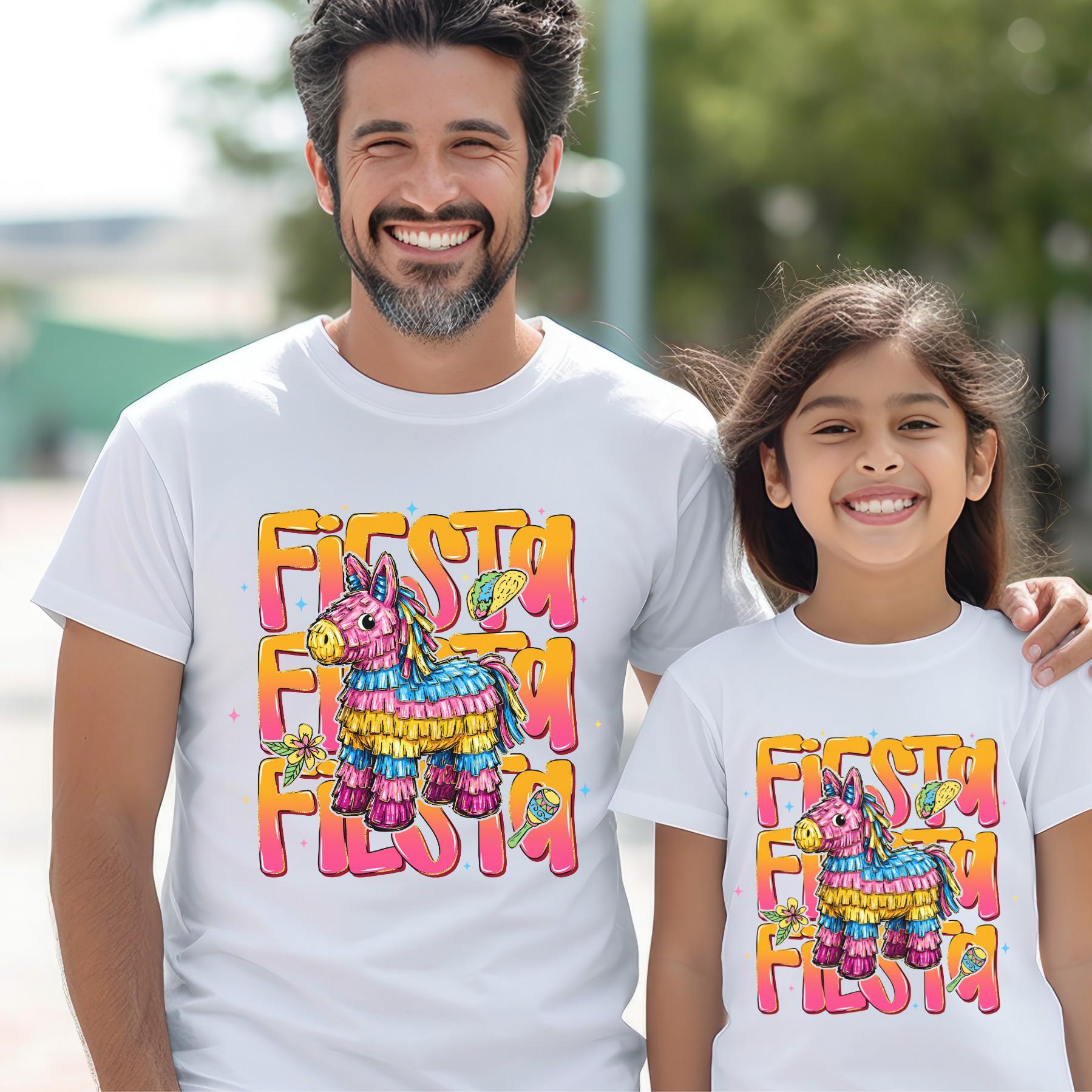 Bring the fun to your fiesta with this bright and playful “Fiesta Fiesta Fiesta” shirt! Designed with a colorful piñata-inspired look and bold lettering, it’s perfect for celebrating Cinco de Mayo with the whole family.