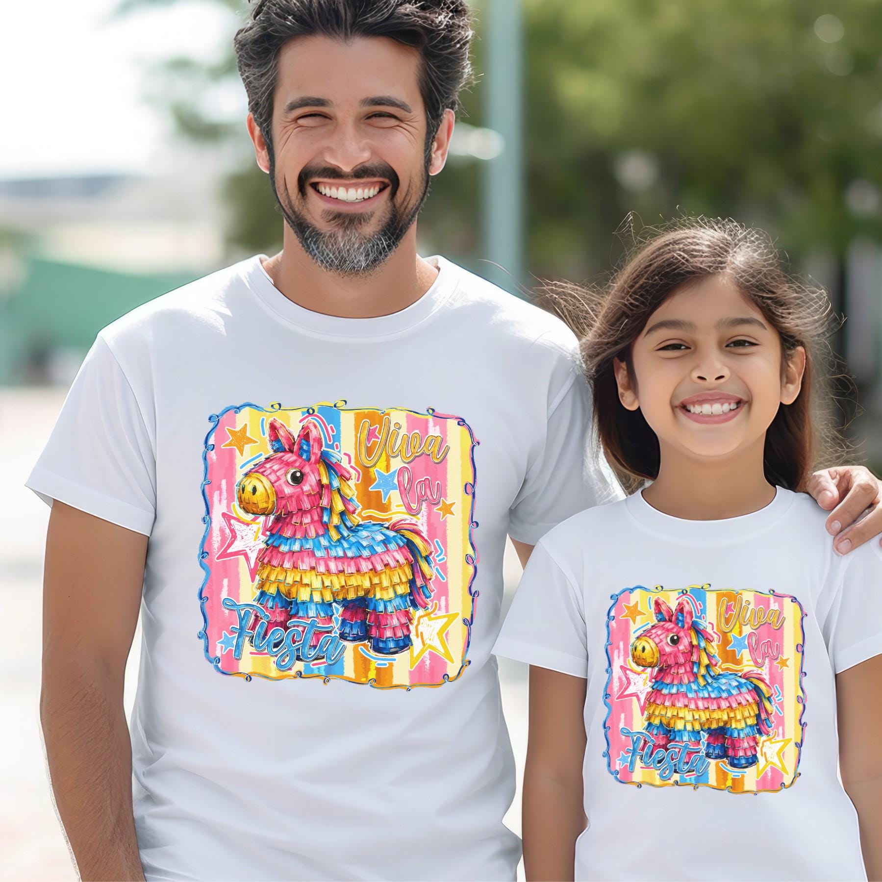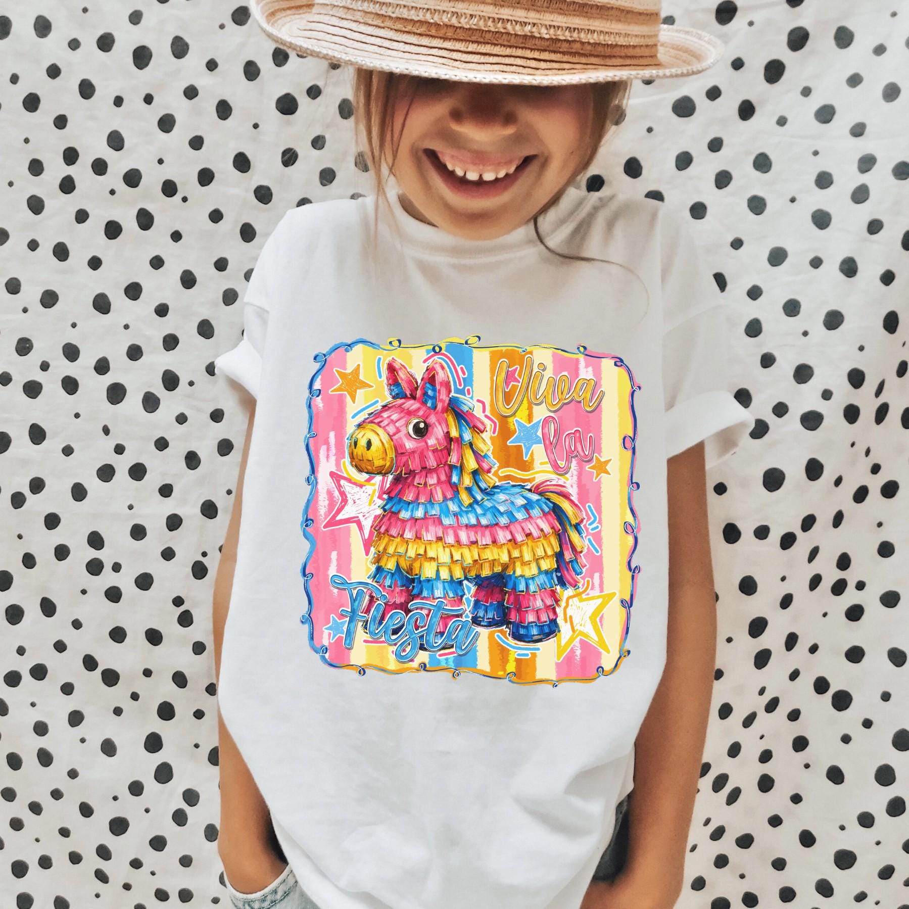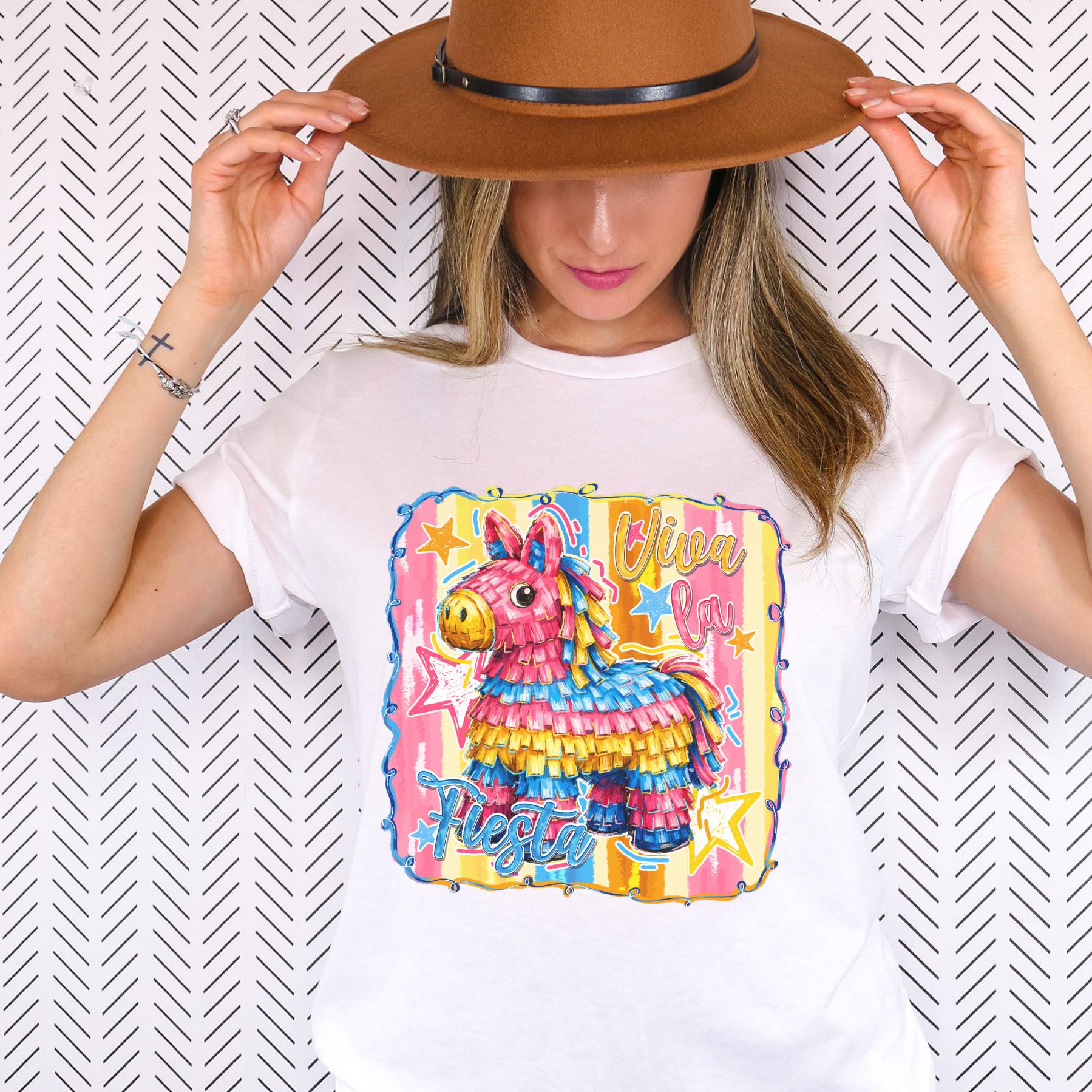 Celebrate in color with this bright and cheerful “Viva La Fiesta” shirt! Featuring a playful piñata-inspired design with soft, vibrant tones, this tee brings a fun and festive look that’s perfect for Cinco de Mayo and beyond.