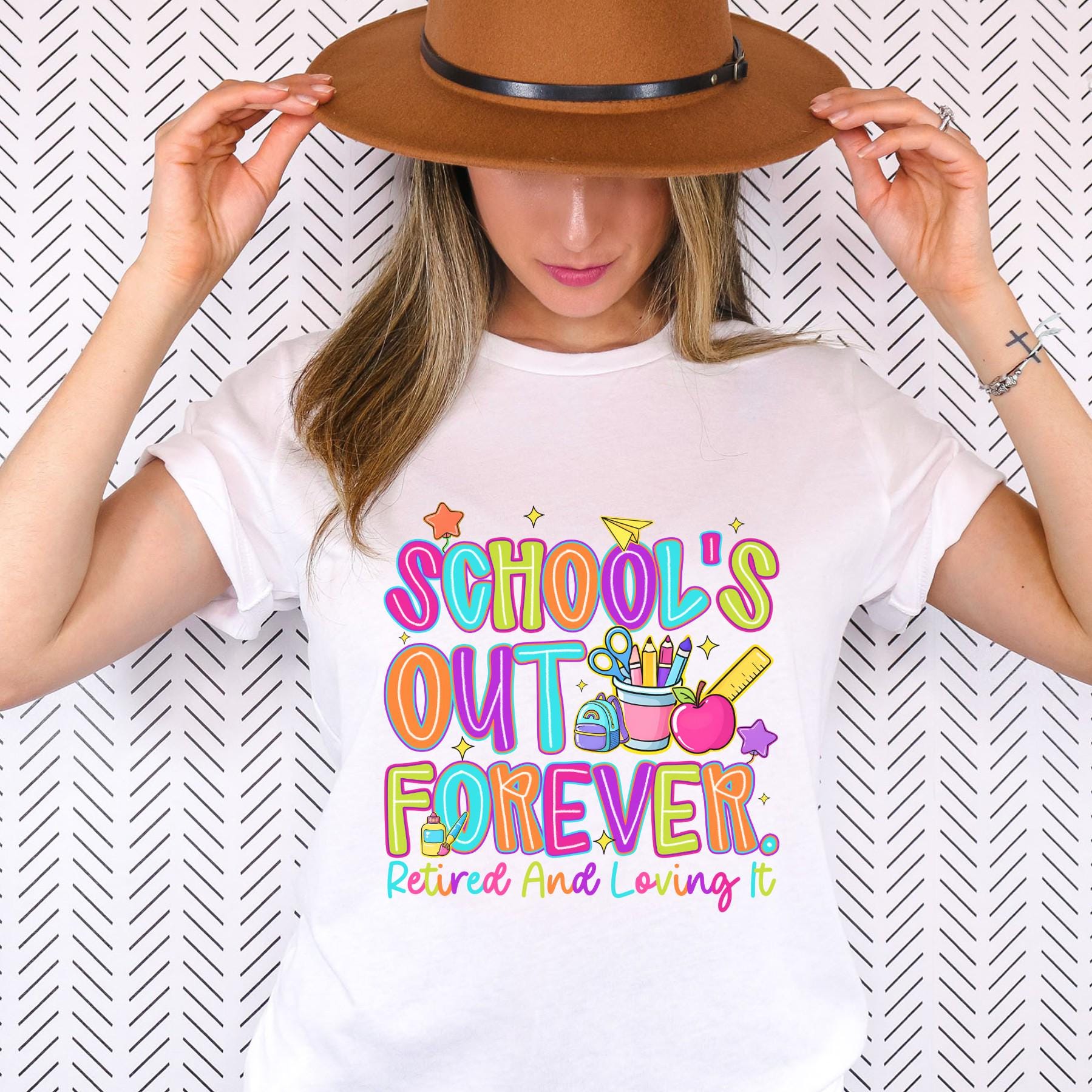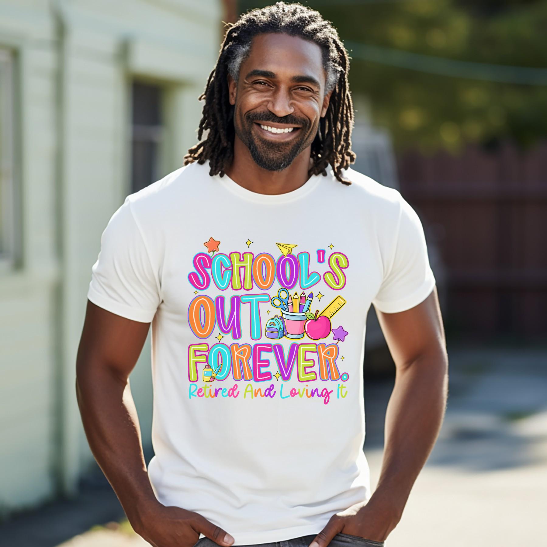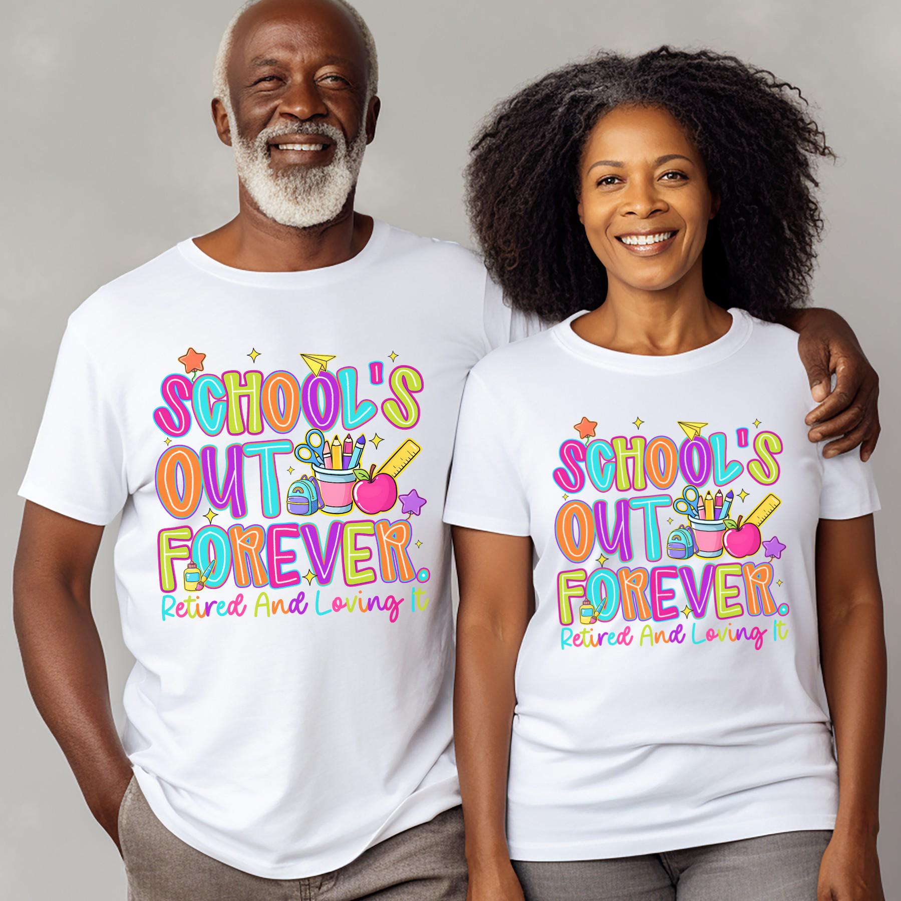 Celebrate the end of an era with this bright and joyful “School’s Out Forever” retired teacher shirt! Designed with playful, colorful graphics and a fun message, it’s the perfect way to honor years of dedication in the classroom.