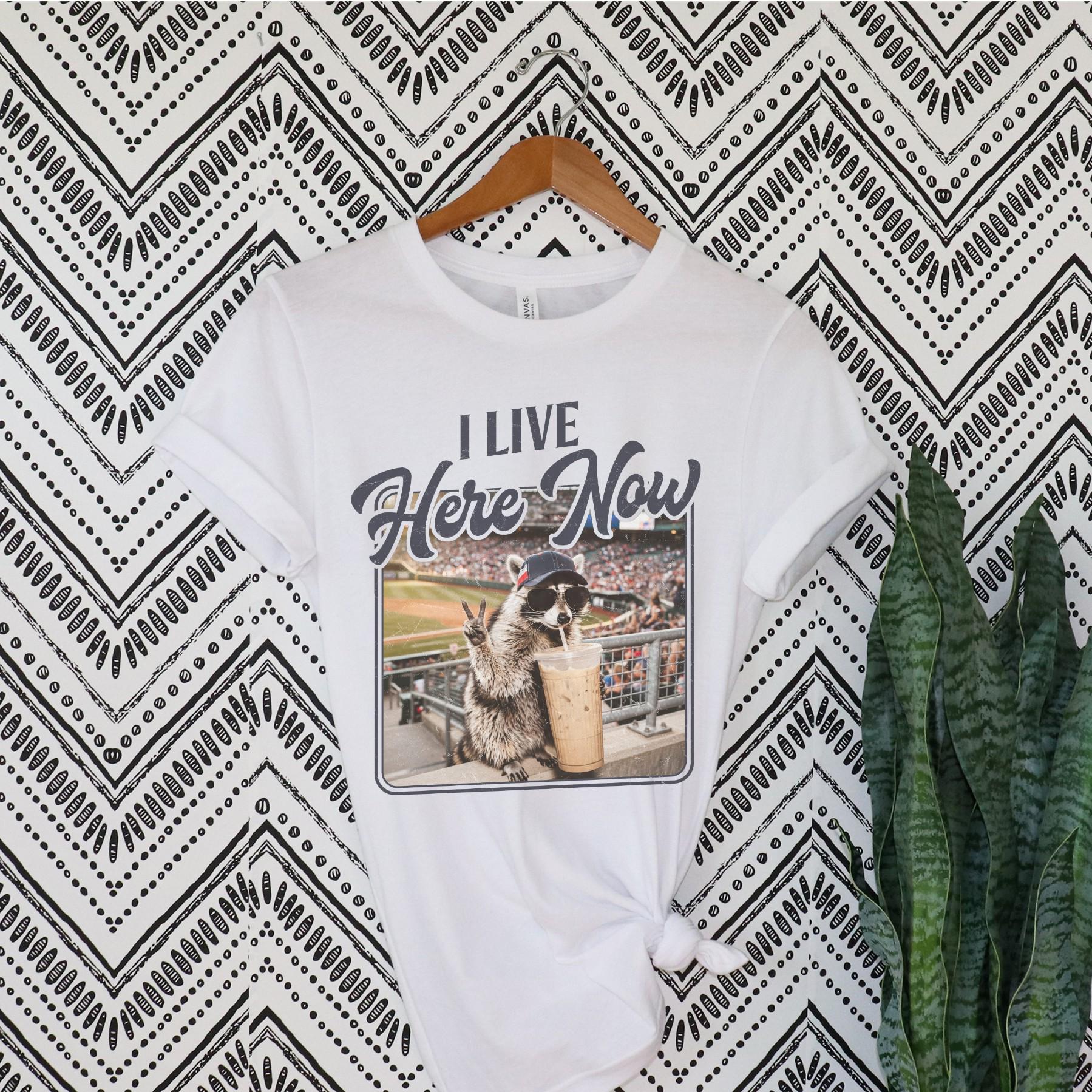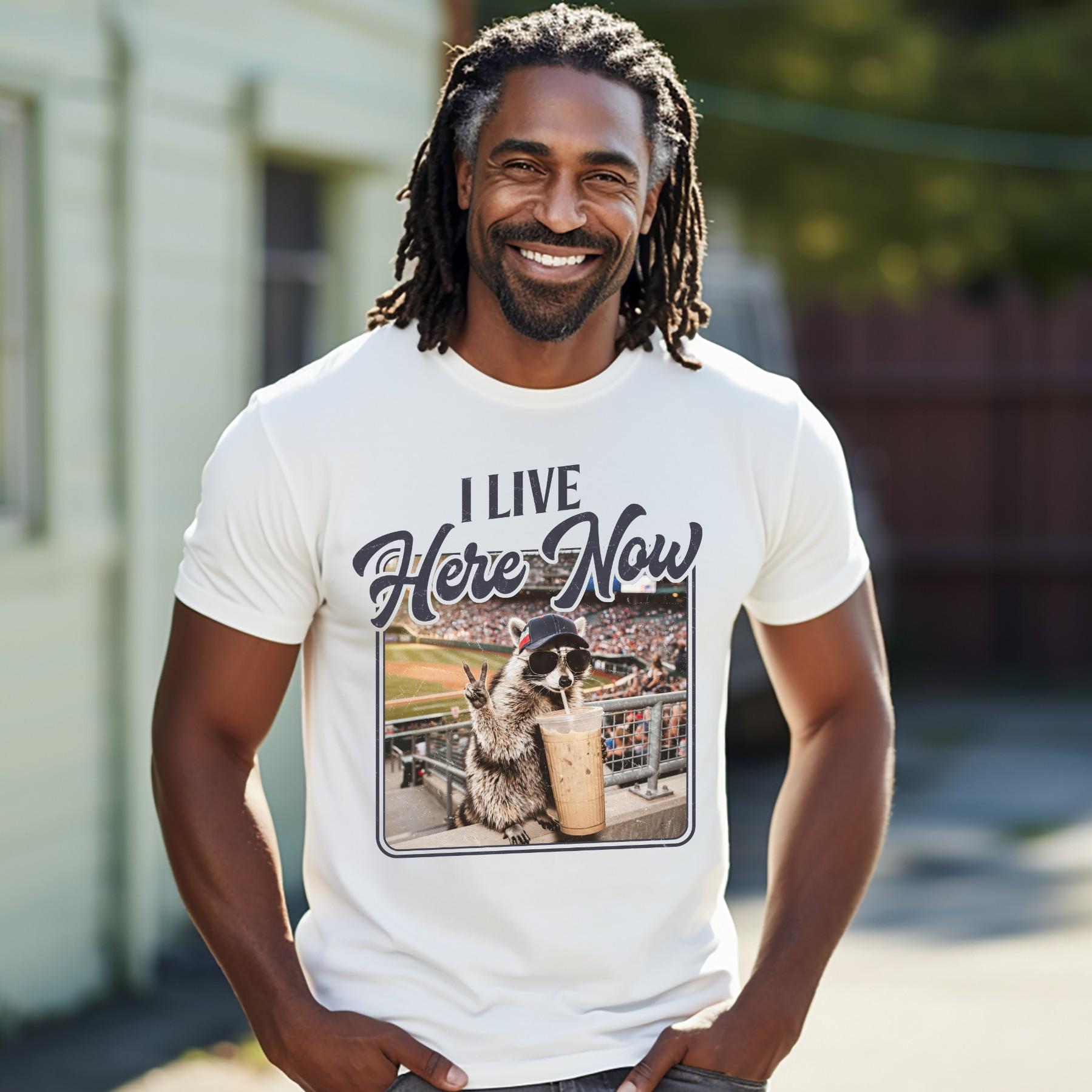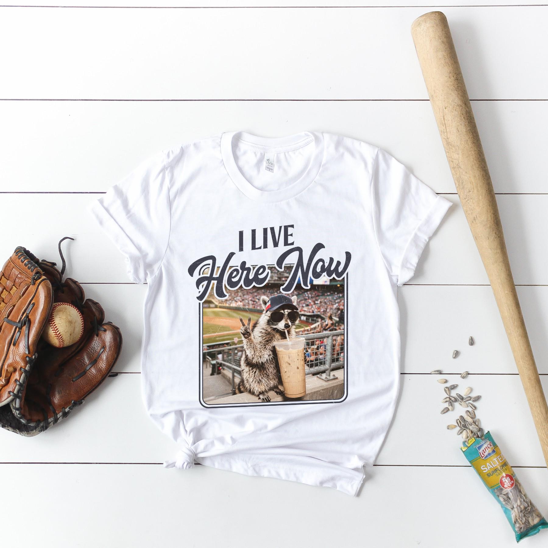 This funny “I Live Here Now” raccoon baseball shirt is perfect for those long game days, tournament weekends, and hours spent in the bleachers. Featuring a laid-back raccoon enjoying the game with a drink in hand, this design captures the true baseball fan lifestyle.