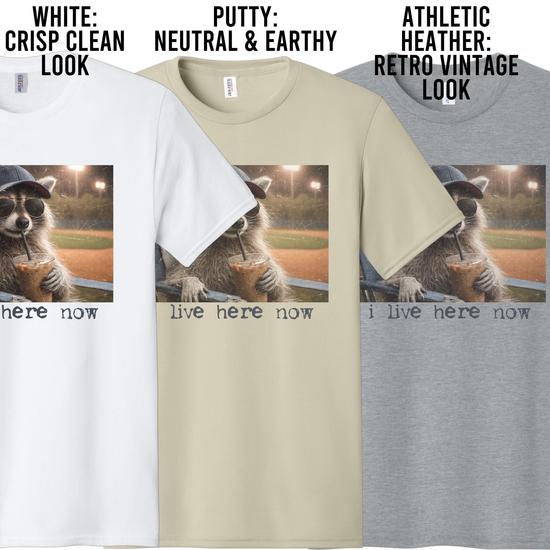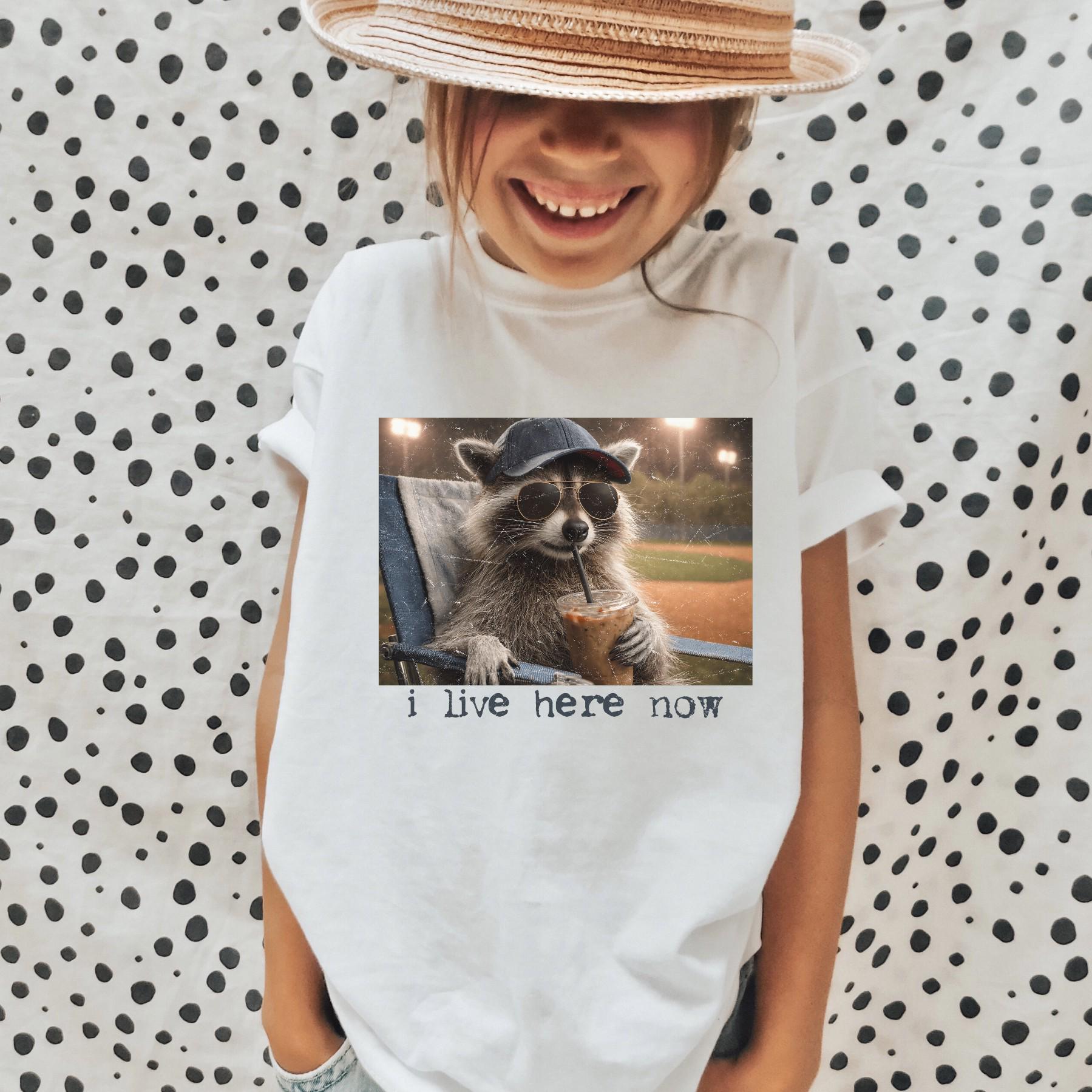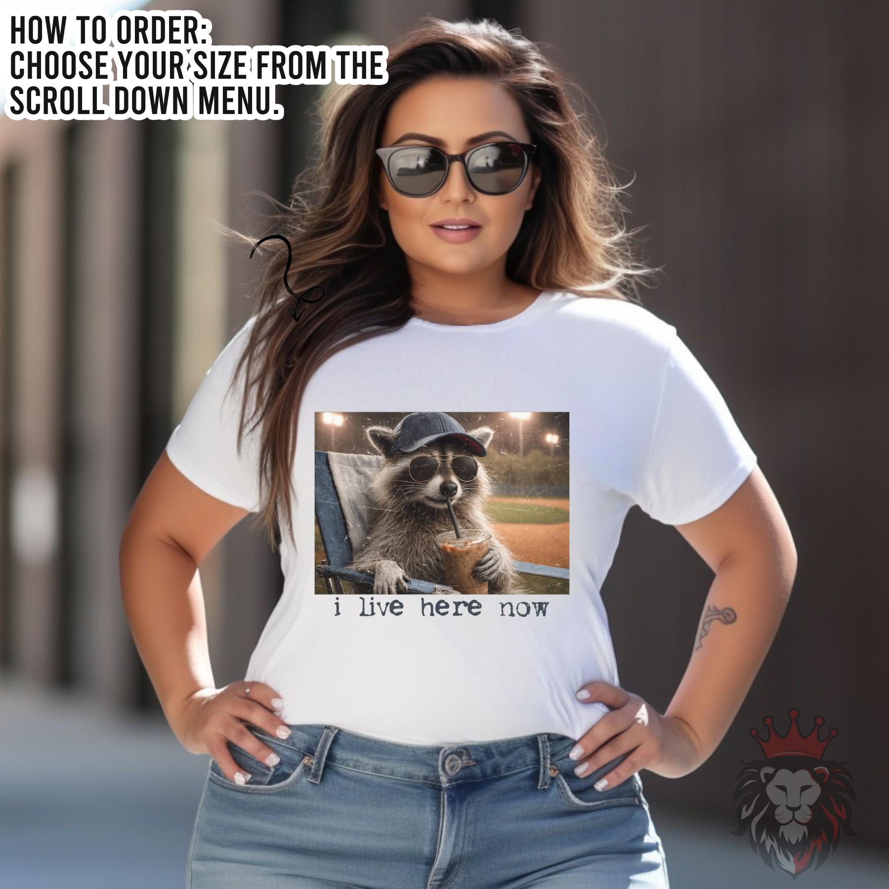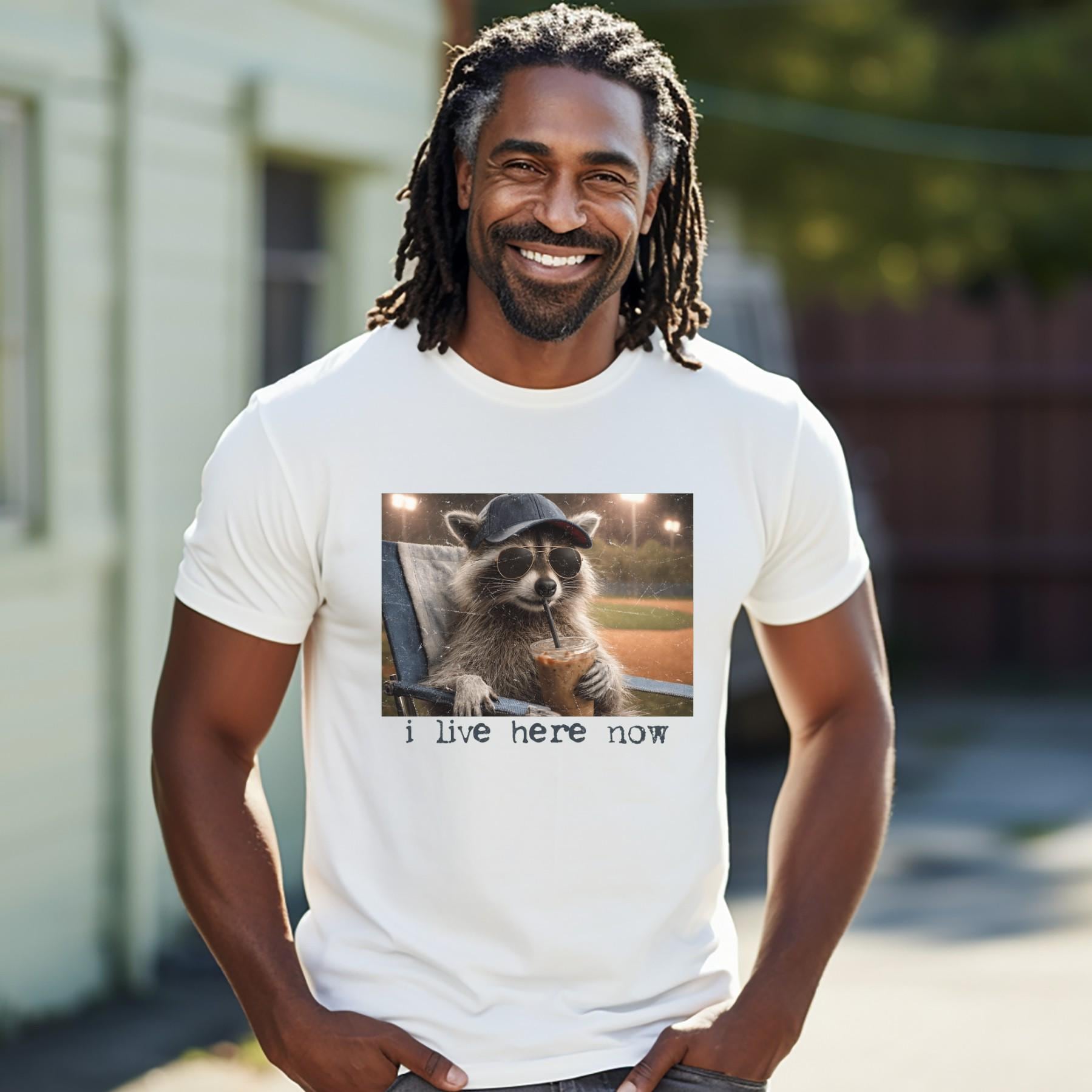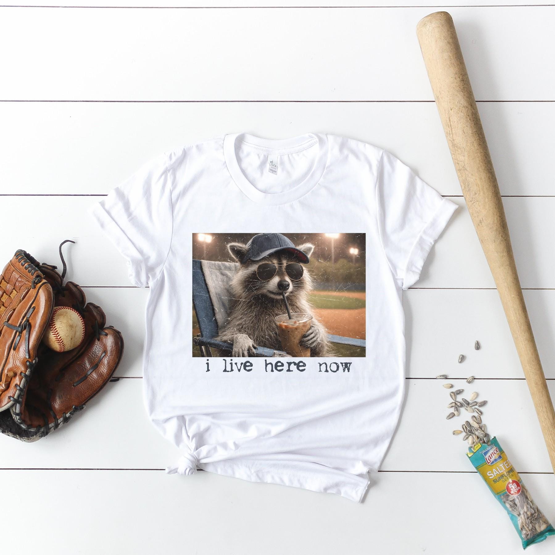 Funny Baseball Shirt I Live Here Now Raccoon Tee Game Day Fan Top