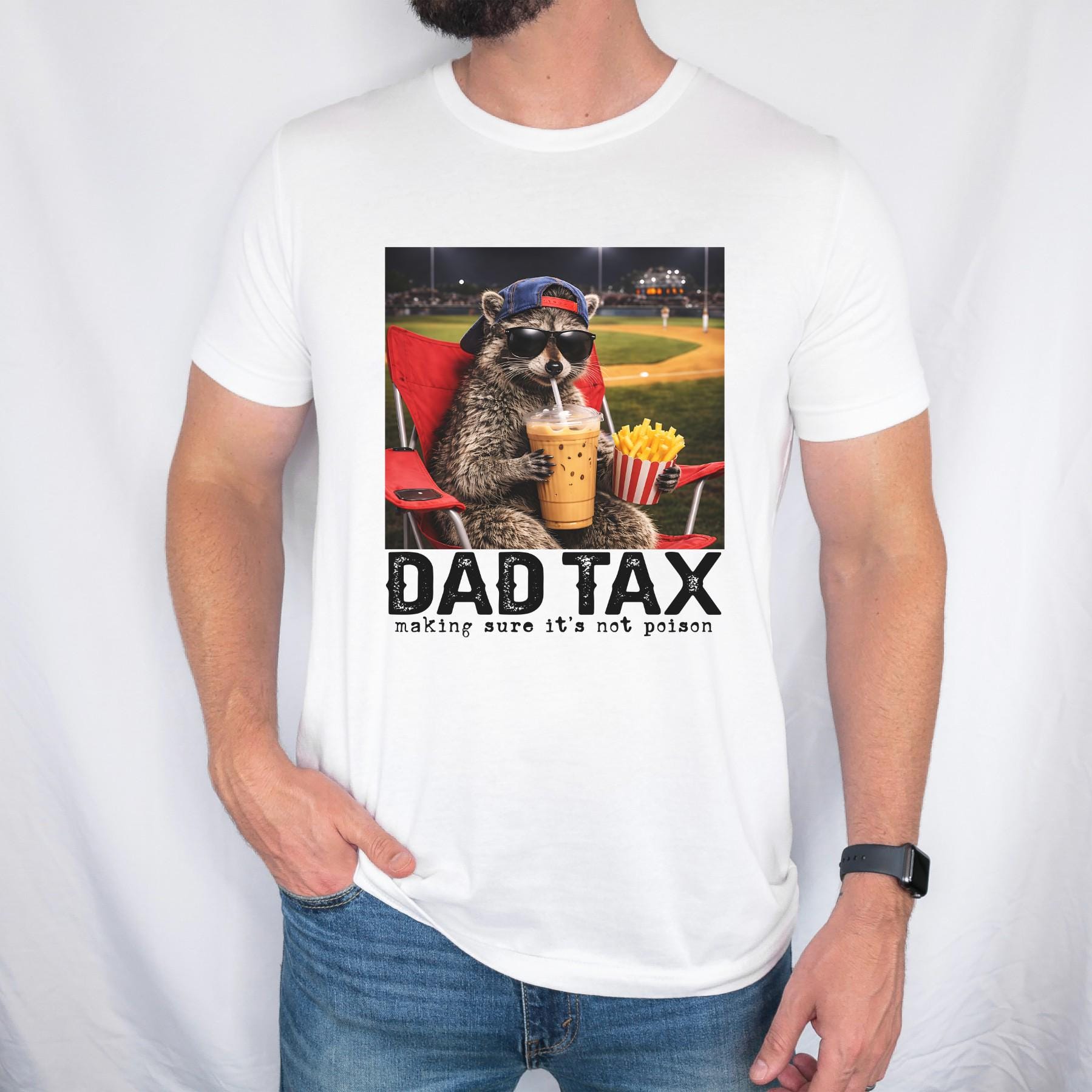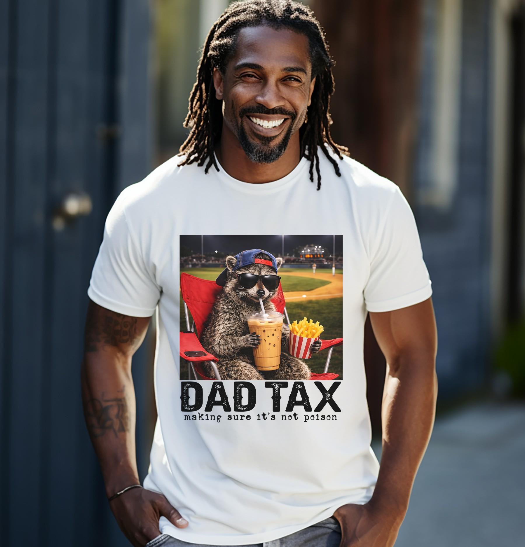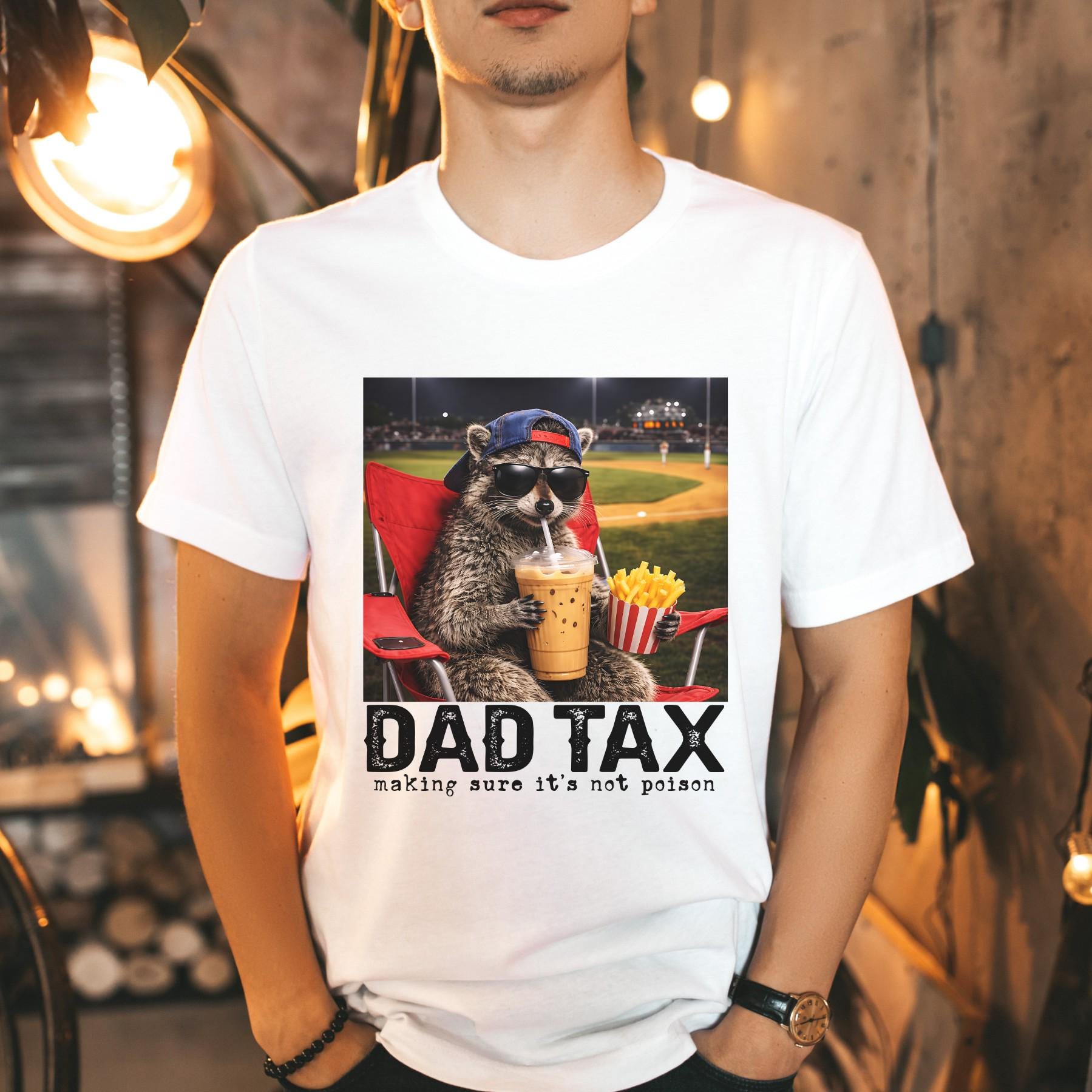 This funny “Dad Tax” shirt brings humor to game day with a cool raccoon graphic enjoying snacks at the ballfield. Perfect for dads who claim their rightful share, this tee is a hit at baseball games, family outings, and everyday wear.