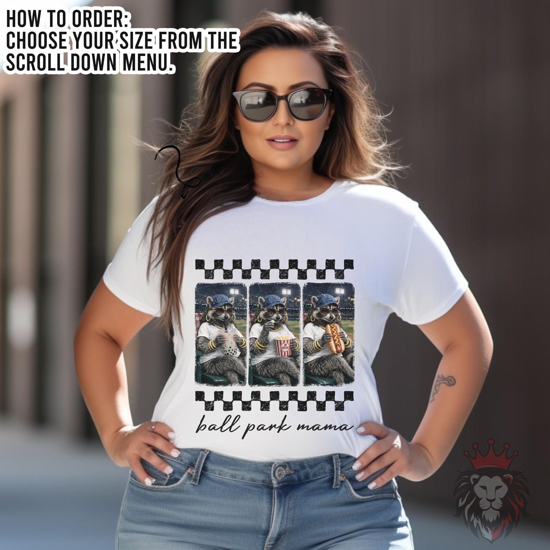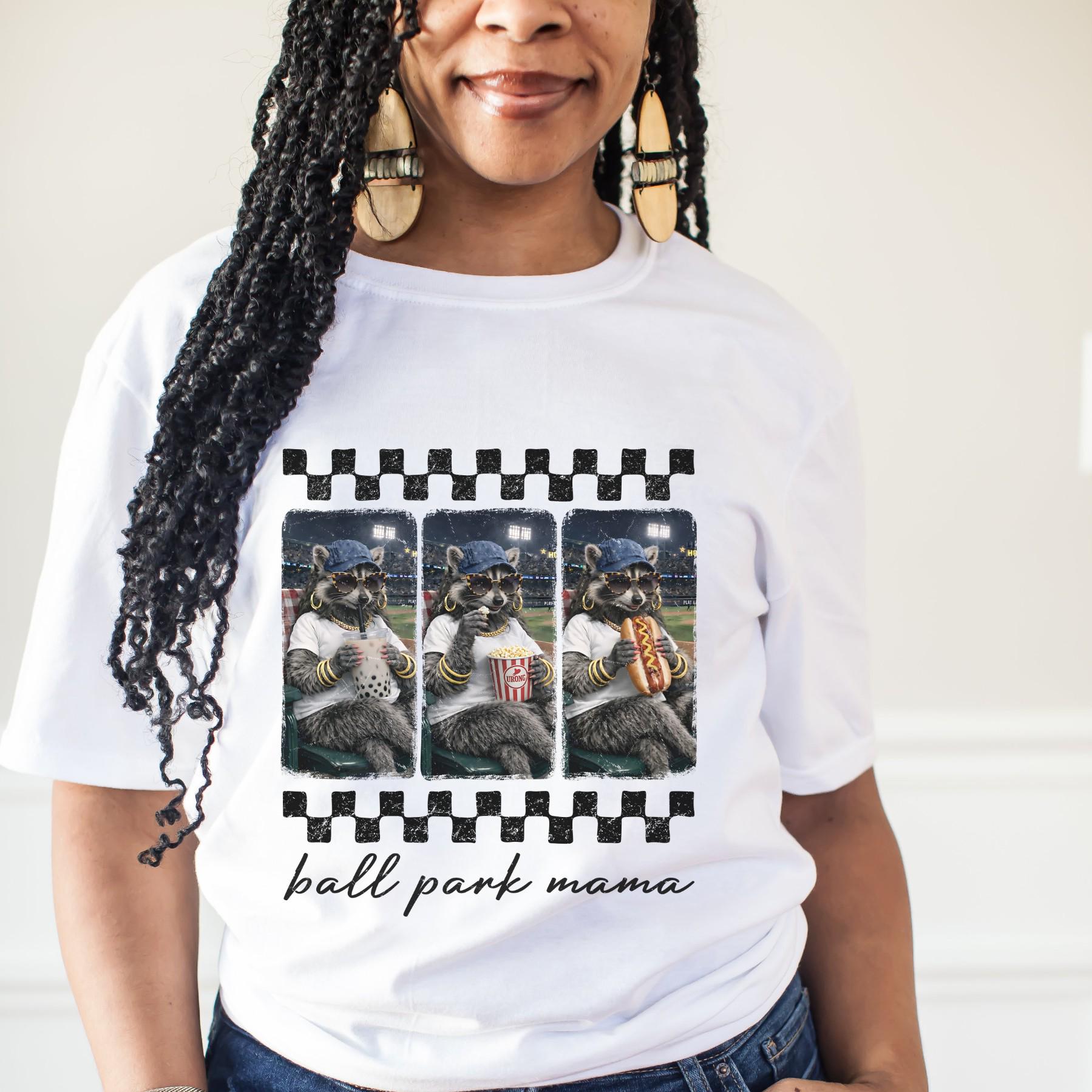 This “Ballpark Mama” shirt is made for moms who practically live at the field. Featuring a fun, eye-catching design with a laid-back racoon with a ballpark vibe, this tee perfectly captures the snacks, sidelines, and all-day tournaments that come with baseball season.