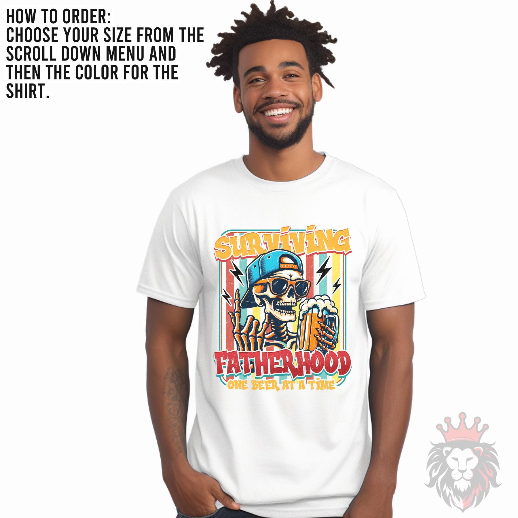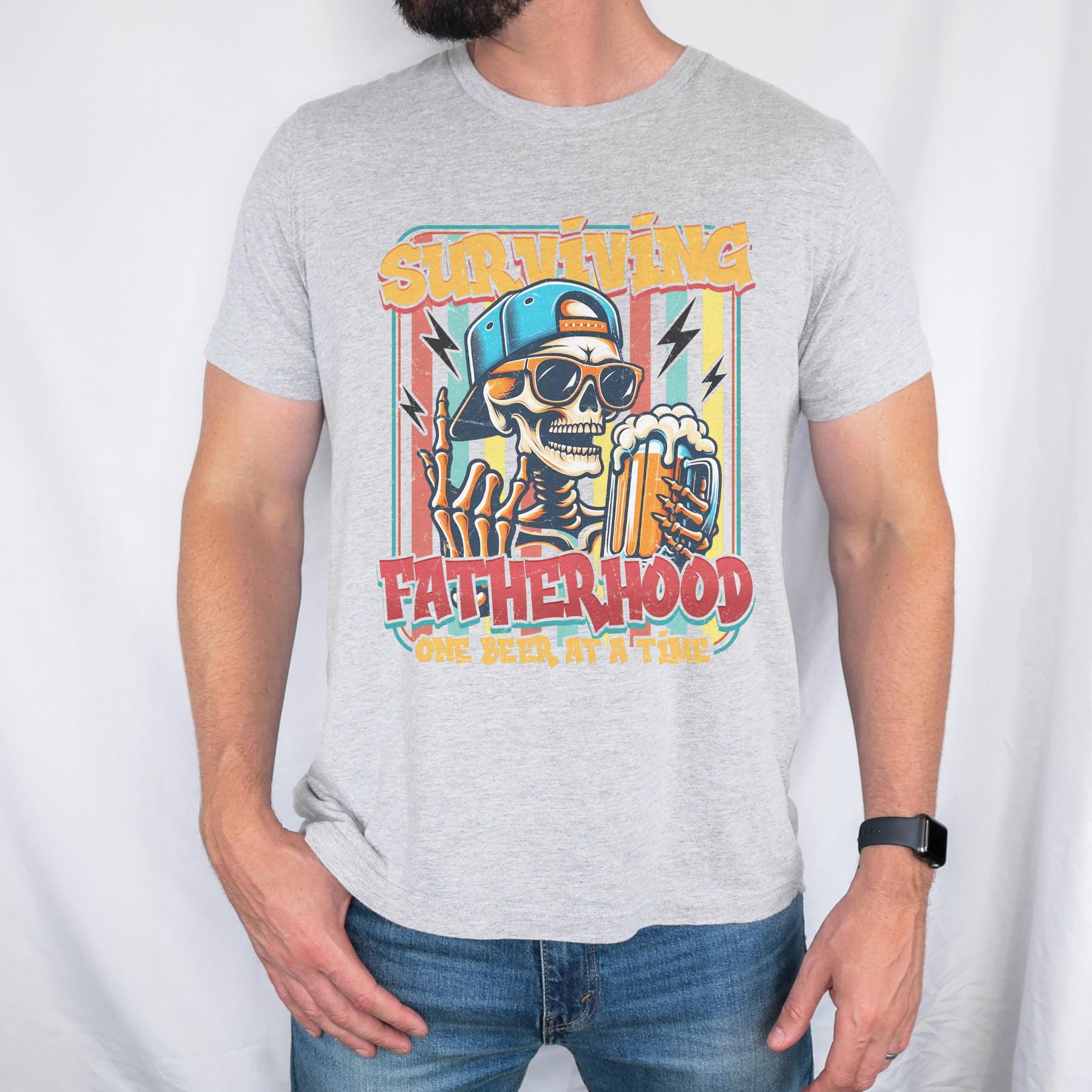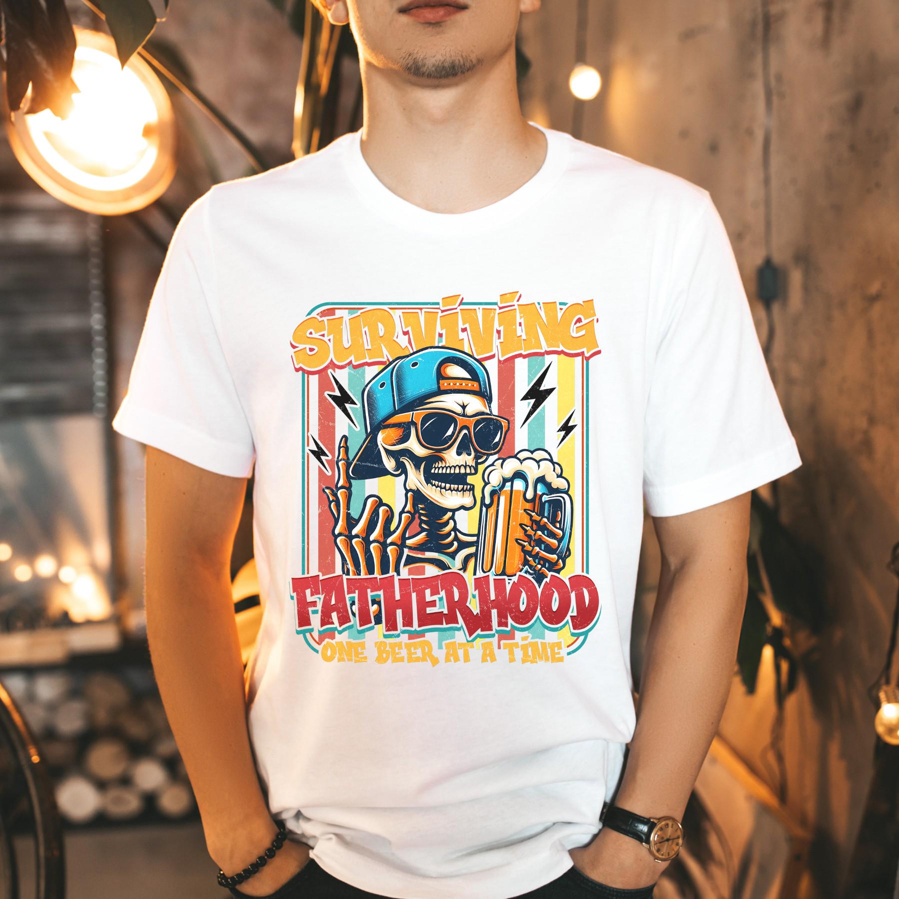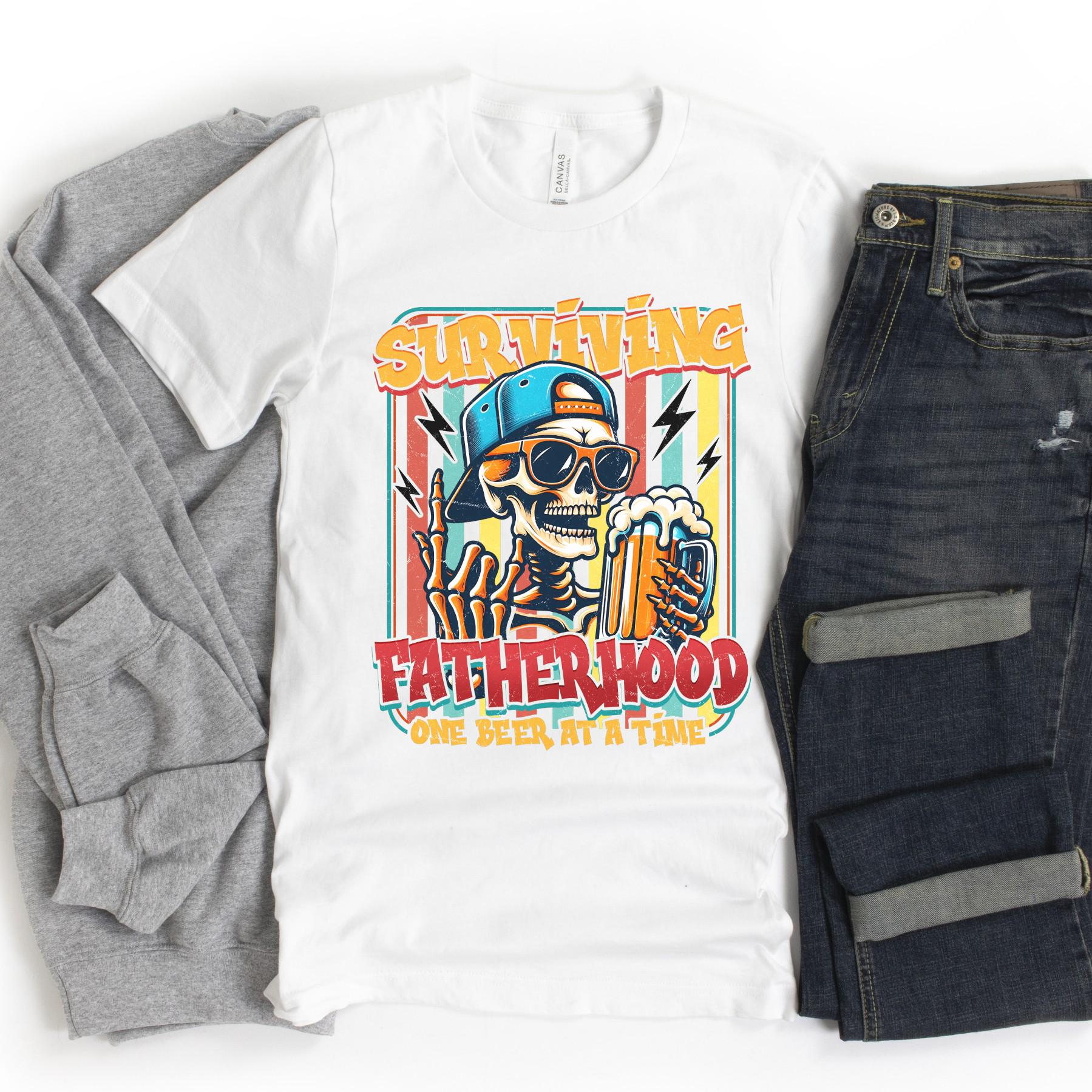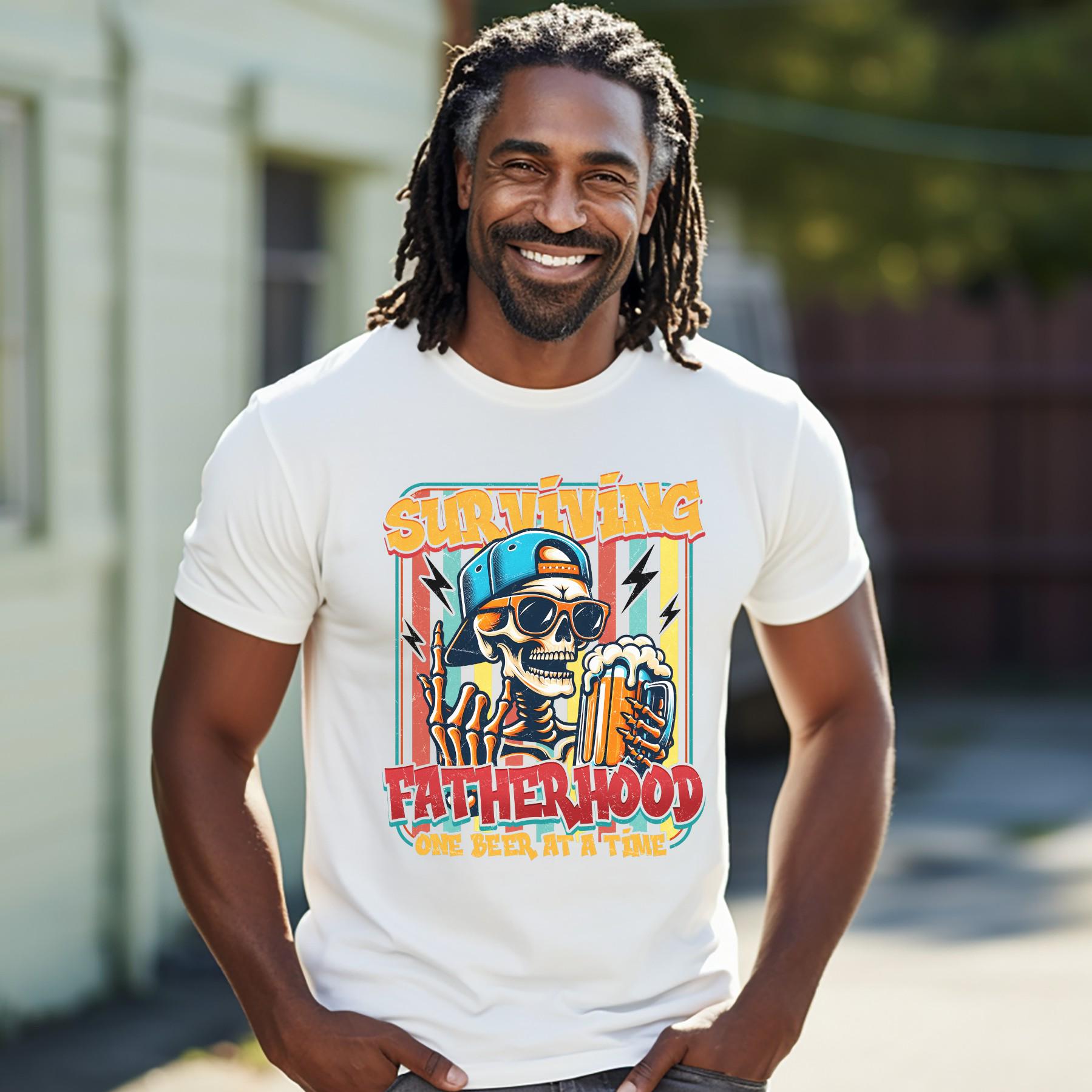 This funny “Surviving Fatherhood – One Beer at a Time” shirt is made for dads who keep it real. Featuring a bold, edgy graphic with a laid-back vibe, this tee brings humor to the everyday chaos of parenting.