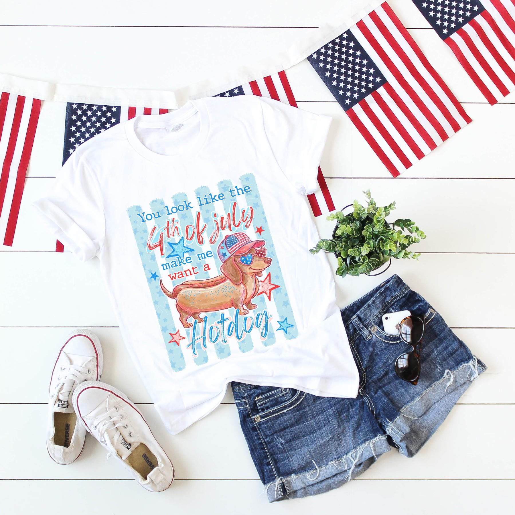 Funny 4th of July Hotdog Dog Shirt