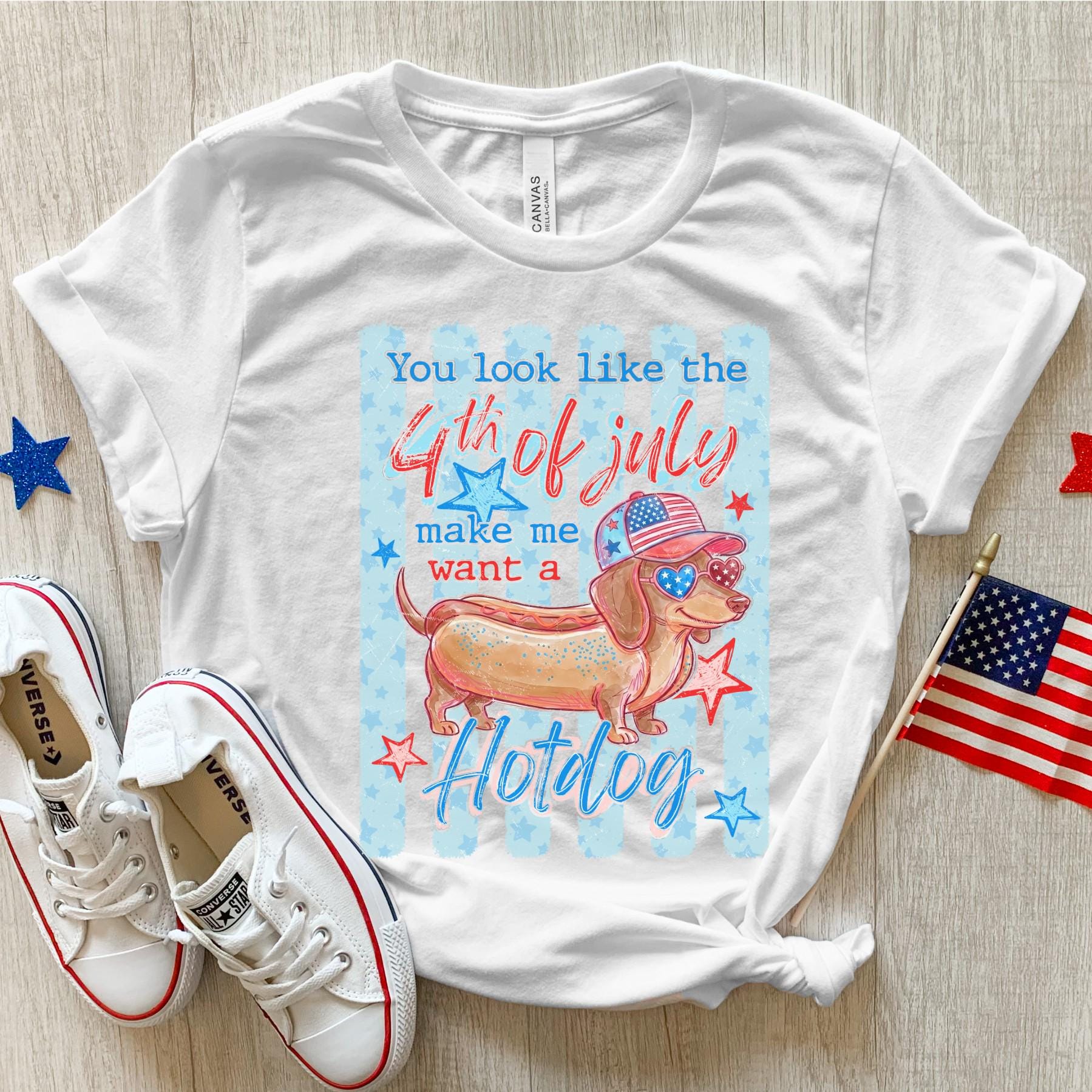 This funny patriotic tee features an adorable hotdog-style pup rocking red, white, and blue with a playful phrase that’s perfect for summer celebrations. It’s the ultimate mix of humor and Americana—made for BBQs, fireworks, and all your festive plans.