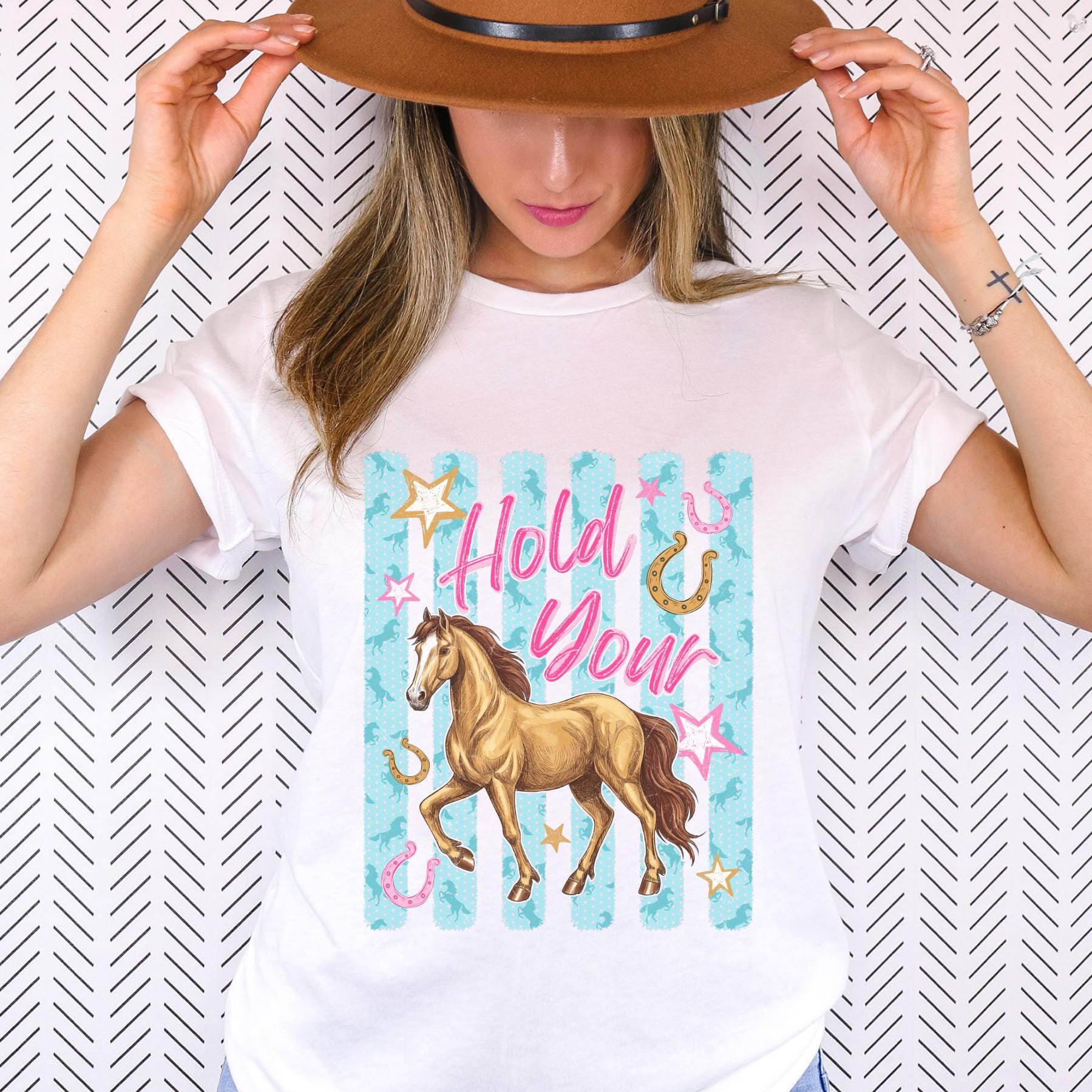 Hold Your Horses Shirt Western Graphic Tee Cowgirl Rodeo Horse Lover