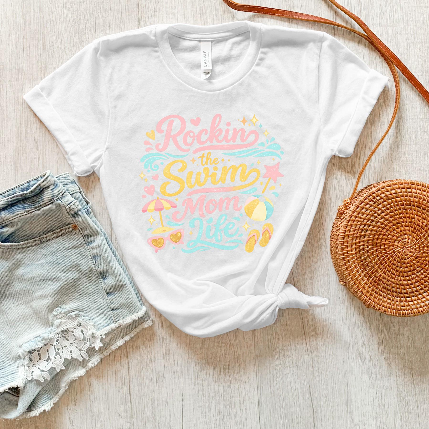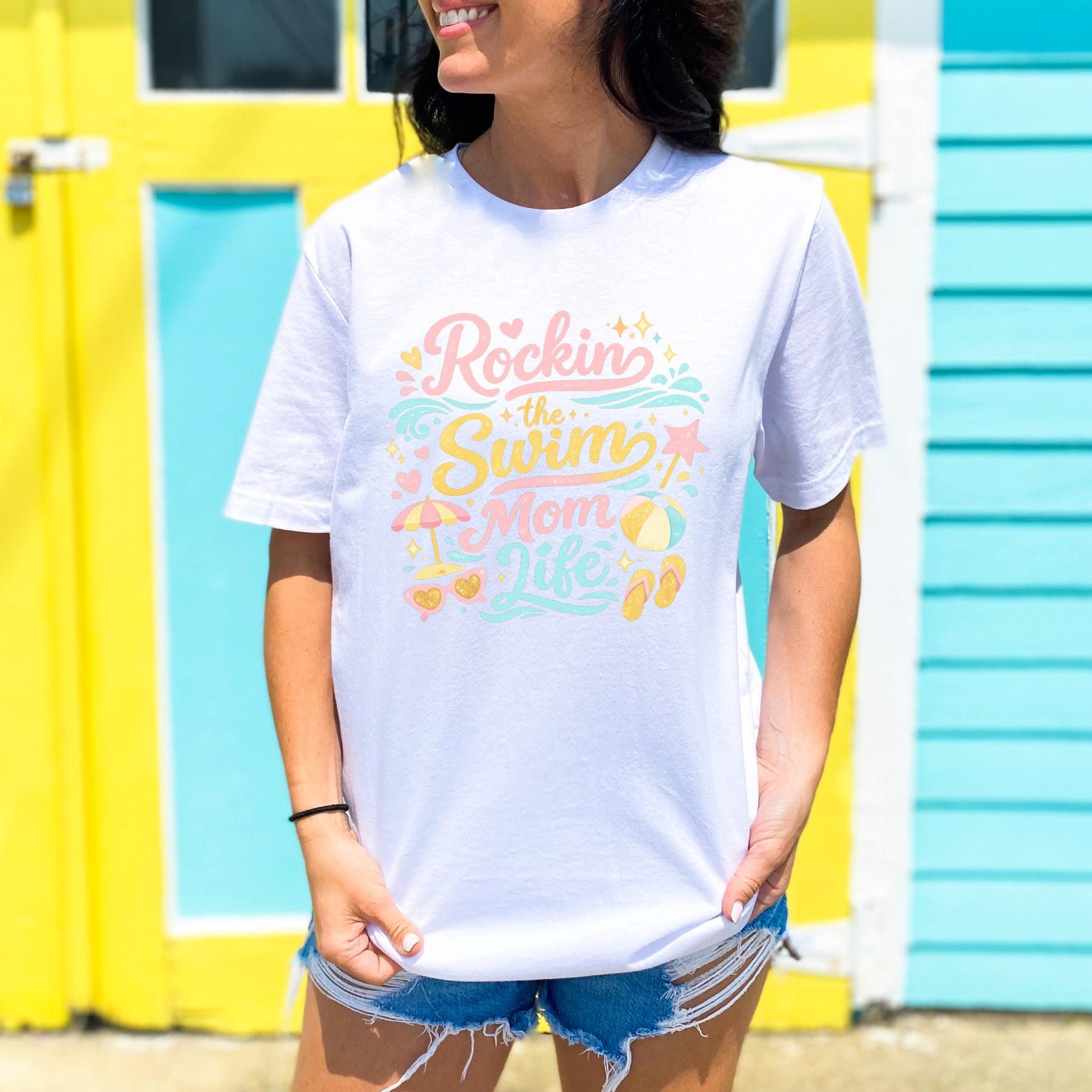 Live your best poolside life in this soft and stylish “Rockin the Swim Mom Life” tee 🌴🏊‍♀️