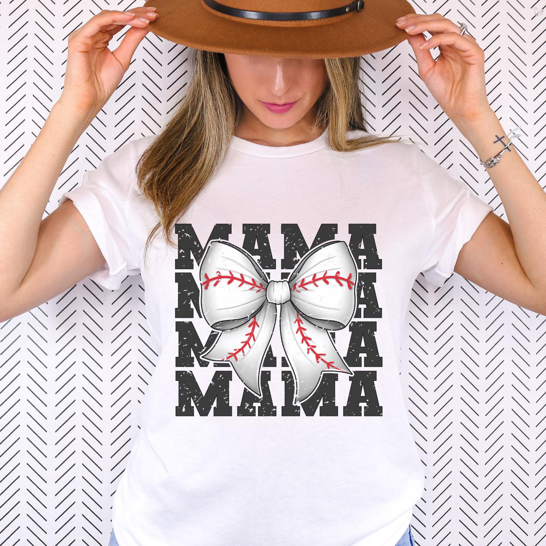 Featuring stacked “MAMA” lettering with a baseball-stitched bow front and center, this design blends a clean, modern look with a subtle feminine touch. It’s the perfect mix of sporty and stylish without trying too hard.