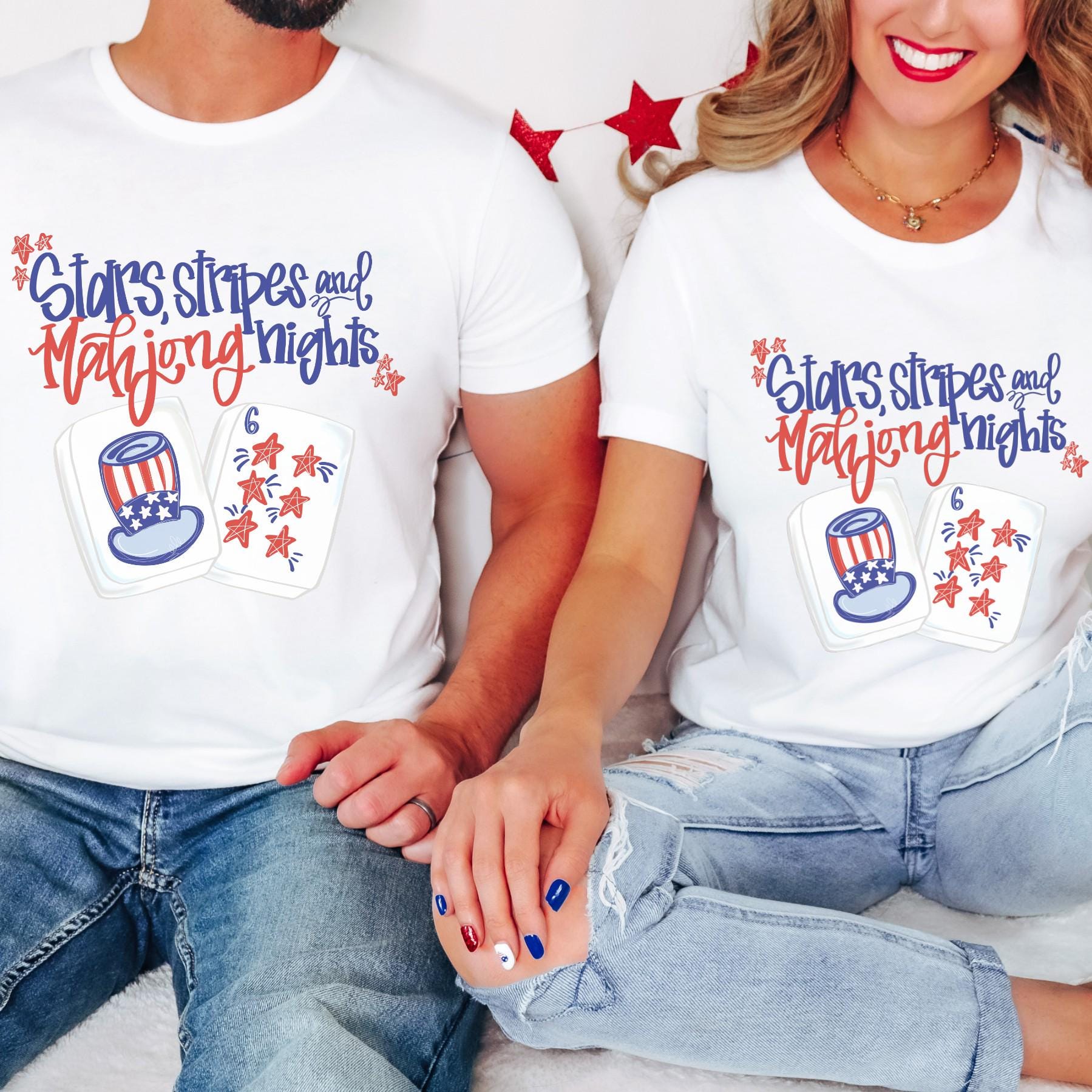 Perfect for Fourth of July, Memorial Day, Labor Day, or any summer Mahjong gathering, this shirt is great for couples, friends, and family matching outfits.